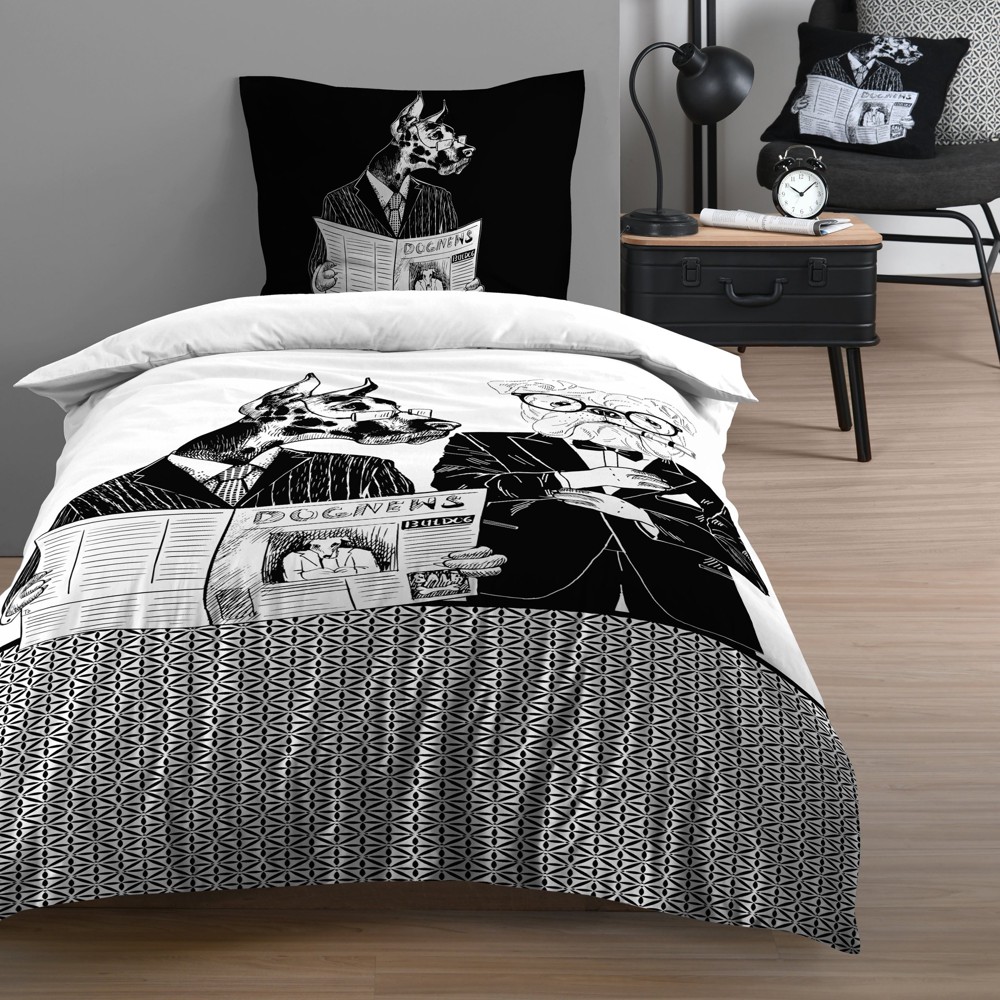 Çarçaf set, Noir, tek, pambuk, gri/e bardhë, 140x200 cm;63x63 cm(x1)