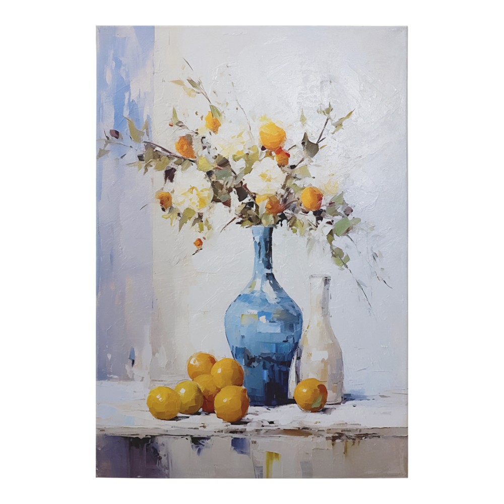 Pikturë, “Flowers”, me përmasa 40x60 cm, paraqet një kompozim të gjallë dhe të freskët me lule të ndryshme në ngjyra të ndritshme dhe harmonike. Detajet delikate dhe përdorimi i ngjyrave të pasura krijojnë një ndjesi natyrale dhe optimiste, duke sjellë gjallëri në çdo hapësirë. Kjo vepër është perfekte për ambiente që kërkojnë një prekje natyrale, ngrohtësi dhe pozitivitet.
