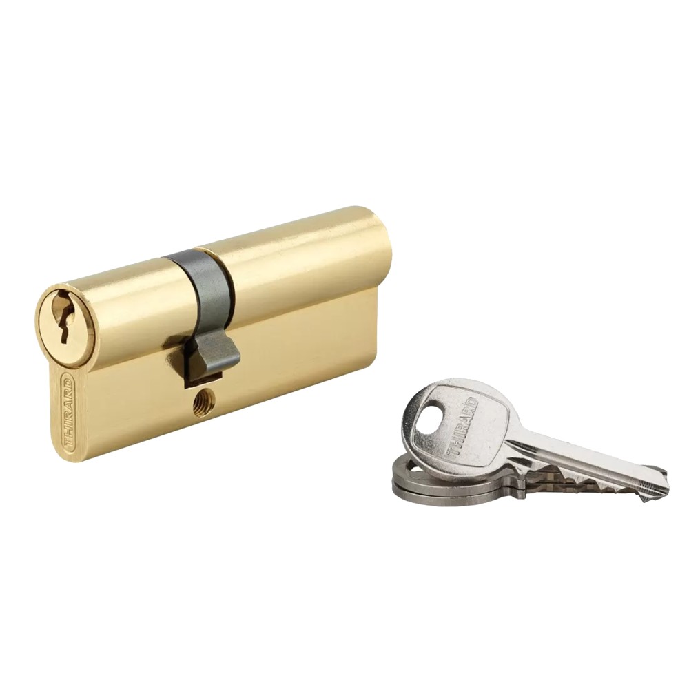 Cilinder bronzi, 30x50mm me mekanizëm prej 5 kunjash për mbrojtje kundër shpimit. Me kunja çeliku të ngurtësuar dhe ka 3 çelësa.