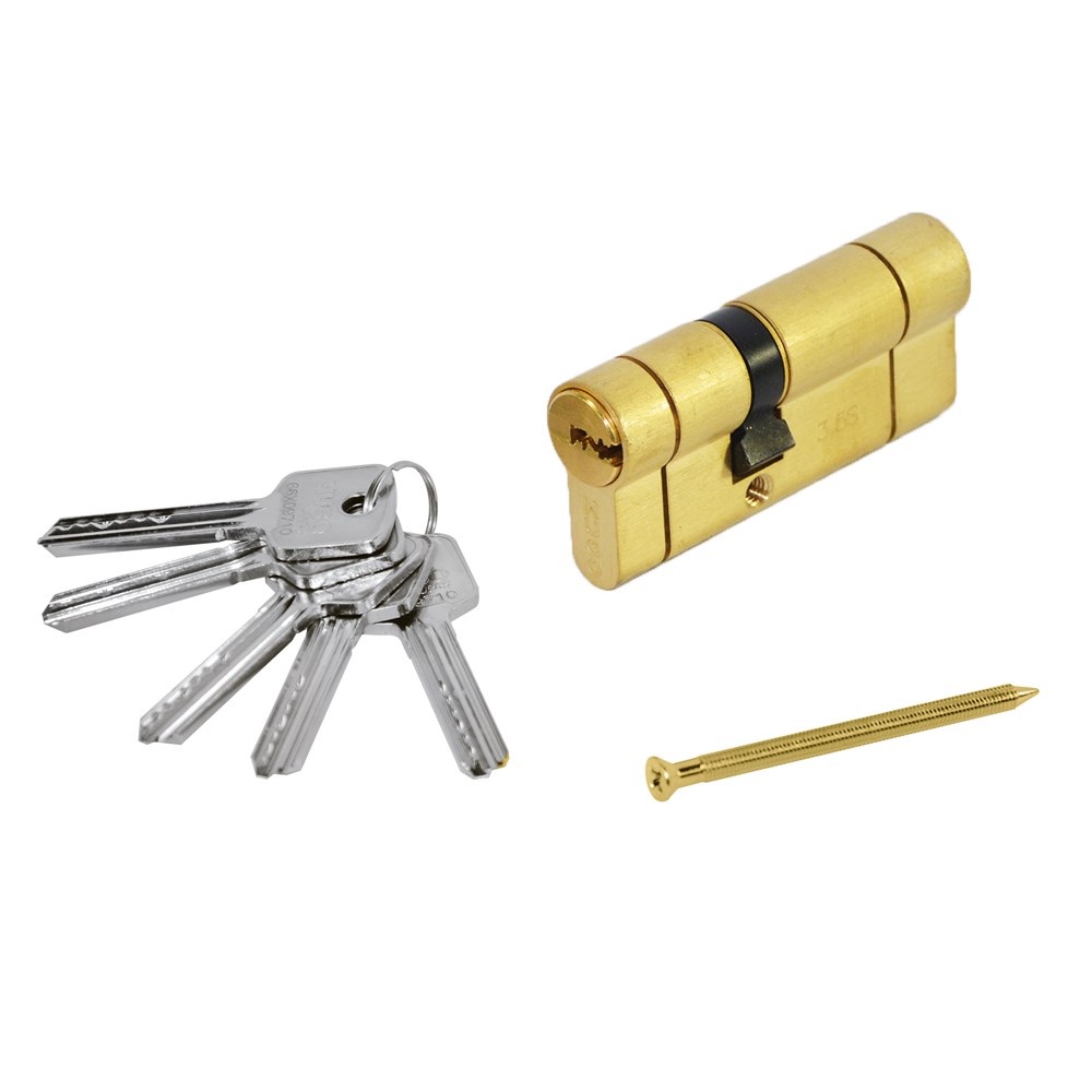 Cilinder per dyer te blinduara, me 5 celesa ,materiali bronz permasat 70mm. Ky cilinder perdoret kryesisht per dyert e jashtme ne saje te sigurise qe jep ky produkt dhe cilesise se larte ne materialin e perdorur. I prodhuar ne disa ndarje te segmentuara per ta bere te pa thyeshem si dhe te pa depertueshem me trapan .