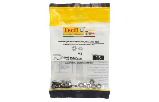 Dado inoksi A2(AISI 304) hegzagonale me frenim, DIN 982 , M5mm , Bag 15