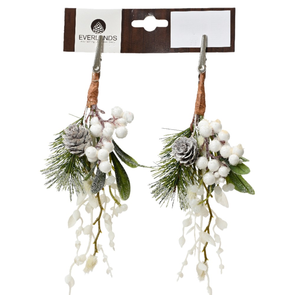 Po vlerësoni:Dege dekorative me motive Christmas, pishe, PVC, ngjyre jeshile me te bardhe, D15 x H22 cm