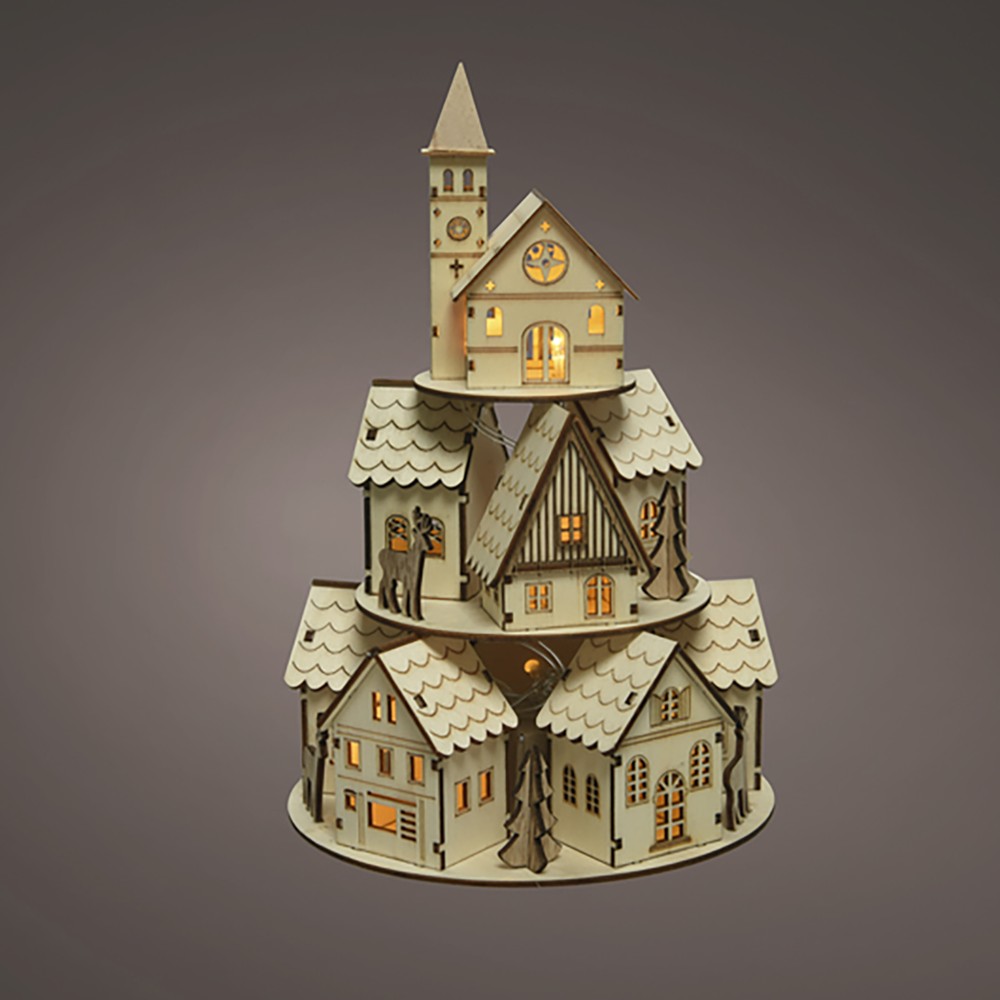 Dekor festiv, fshati Xmas, ndricim led, perdorim I brendshem, L18xW18xH29 cm, natyrale/e bardhë e ngrohtë