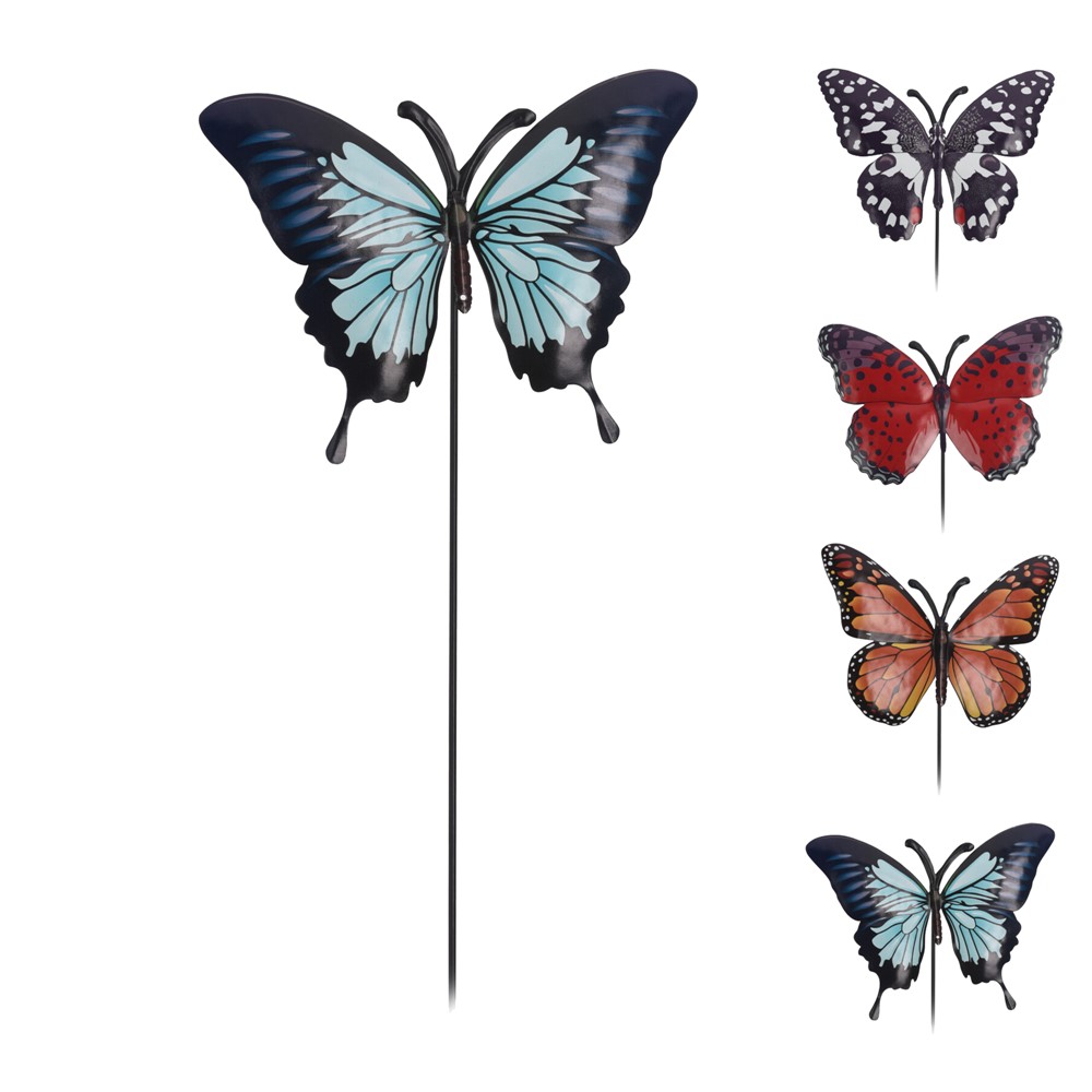 Shtoni këtë zbukurues shumëngjyrësh në gjelbërimin tuaj të preferuar për të mirëpritur vizitorët në kopështin tuaj në një stil ndryshe plot ngjyra. Flutura ka një konstruksion të fortë metali , krahët që lulëzojnë në ngjyra të ndryshme, dhe një shkop që mund ta vendosni në vazo ose kopësht. Është një mënyrë e sigurt për të përmirësuar dekorin tuaj në natyrë.