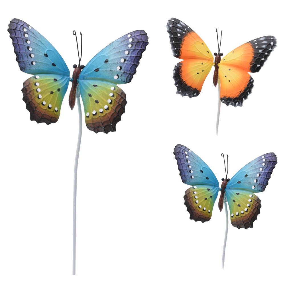 Shtoni këtë zbukurues shumëngjyrësh në gjelbërimin tuaj të preferuar për të mirëpritur vizitorët në kopështin tuaj në një stil ndryshe plot ngjyra. Flutura ka një konstruksion të fortë metali, krahët që lulëzojnë në ngjyra të ndryshme, dhe një shkop që mund ta vendosni në vazo ose kopësht. Është një mënyrë e sigurt për të përmirësuar dekorin tuaj në natyrë.