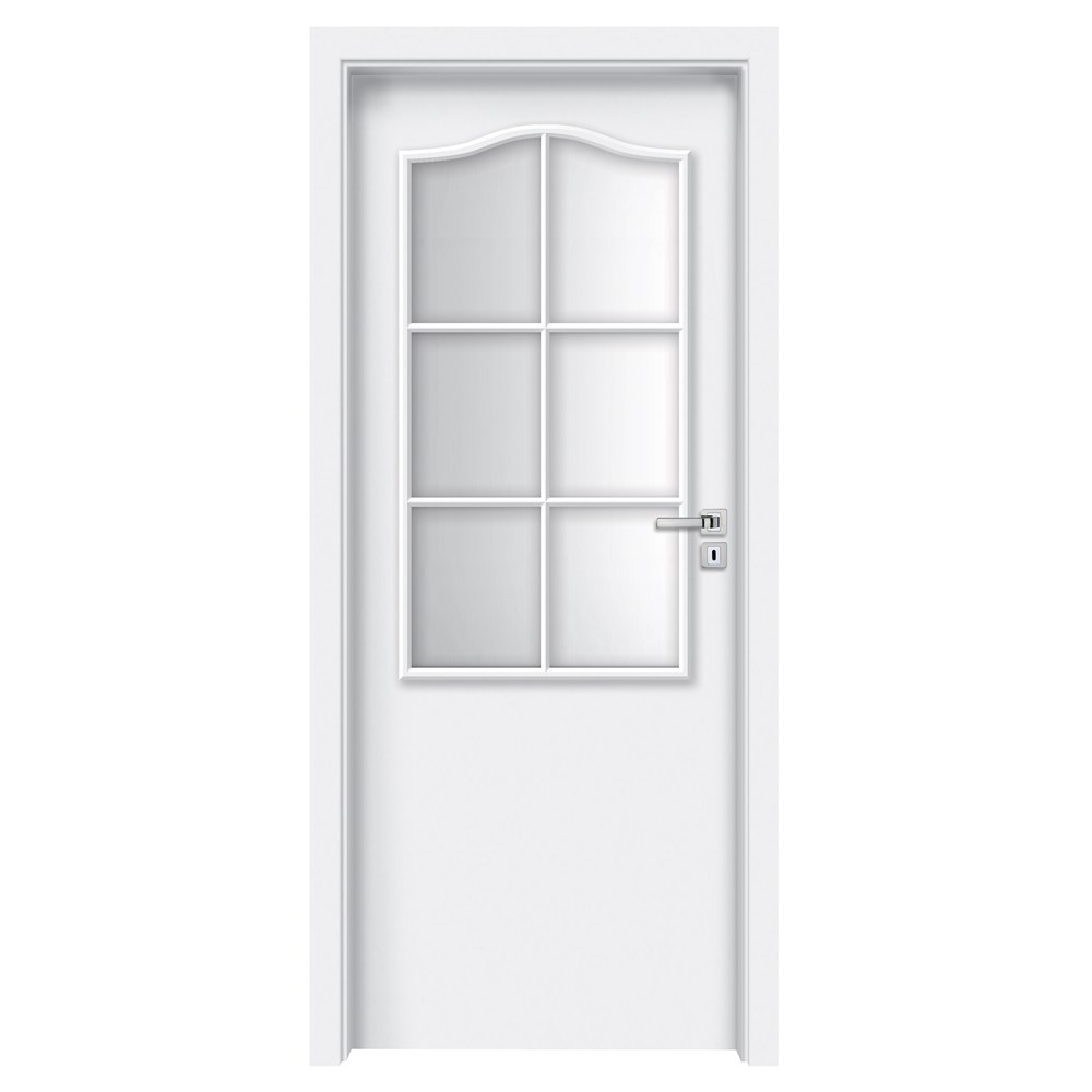 Derë e brëndshme, me xham, hapje majtas, 80x204cm, gjerësi kase 14-16cm, ngjyrë të bardhë, ORS2, B639