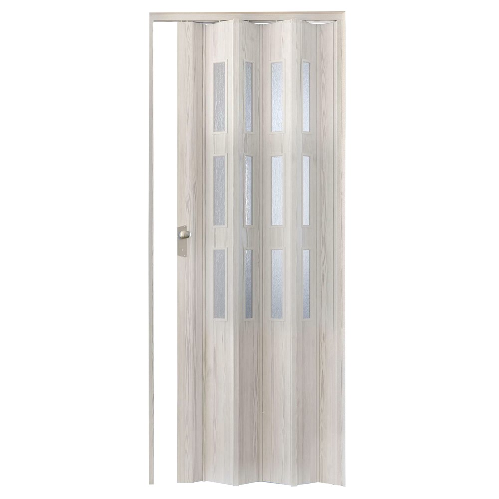 Po vlerësoni:Dere fizarmonik, PVC, me bravë alumini, 88.5x214 cm, ngyrë pishe e bardhë me xham, me teksture 3D