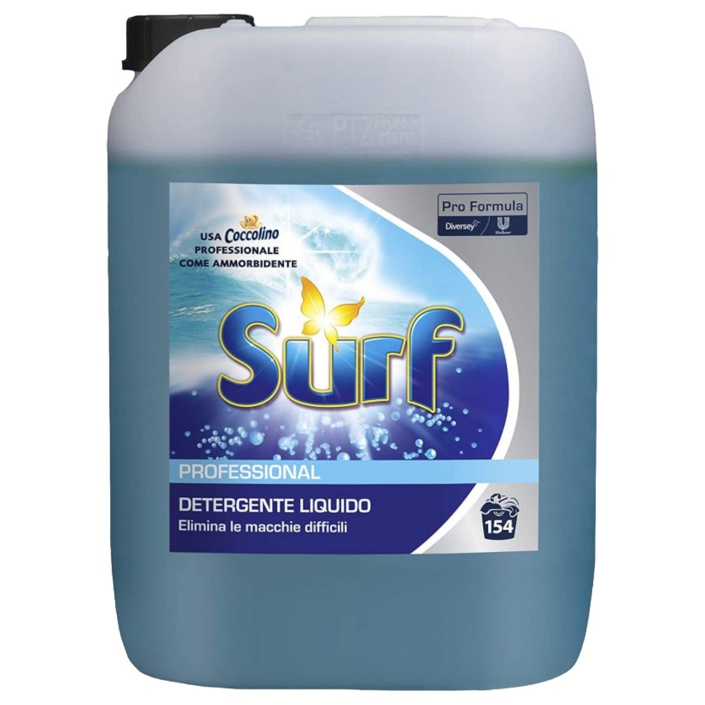 Detergjent likuid profesional për larjen e rrobave në lavatrice, Surf, me kapacitet prej 10 litrash. Garanton rezultate të shkëlqyera në të gjitha kushtet e fortësisë së ujit. Largon njollat më të vështira edhe në temperatura të ulëta, duke mbrojtur pëlhurat dhe ngjyrat.