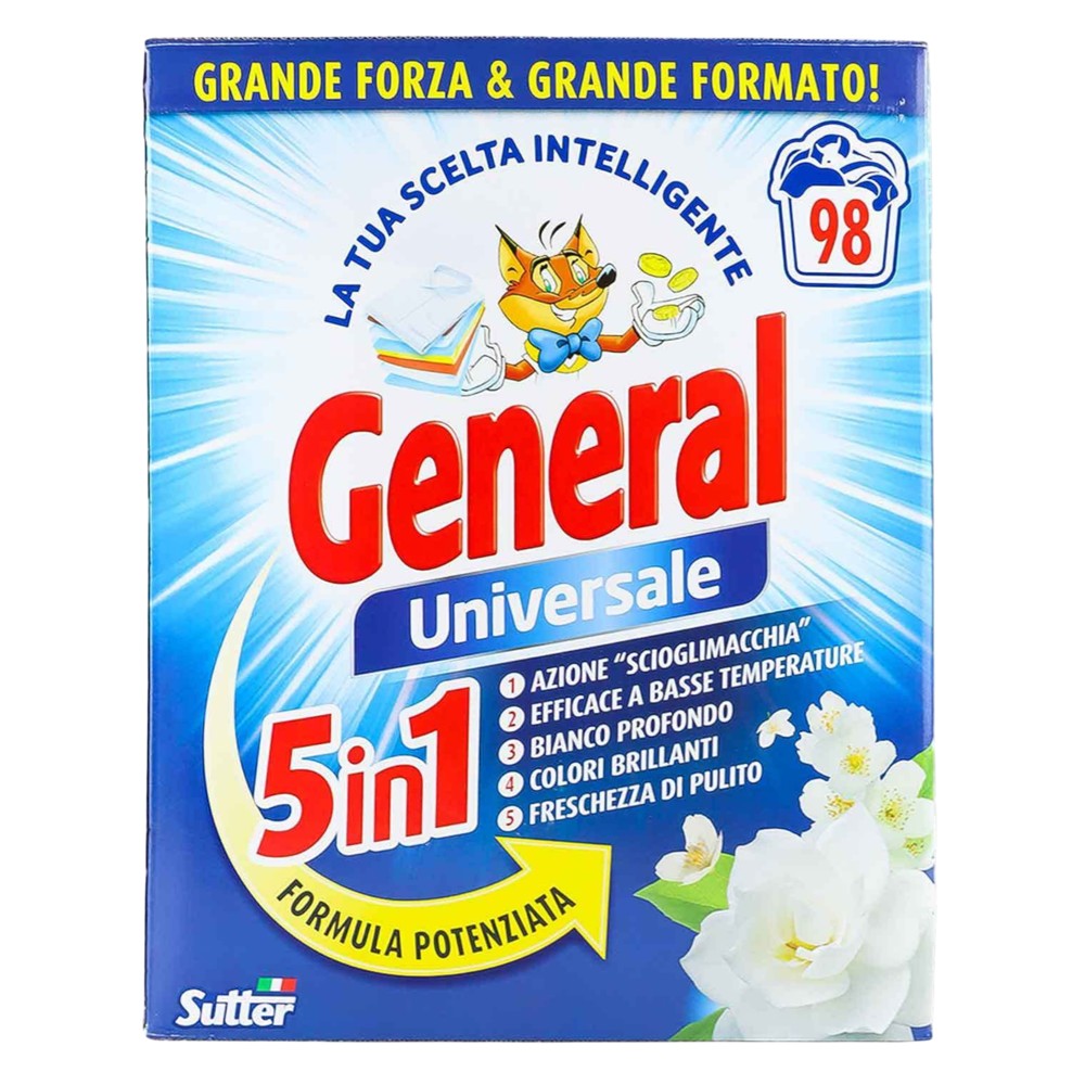 Detergjent pluhur i fuqishëm për larjen e rrobave, i formuluar me 5 veprime në 1 për pastrim të thellë, heqje të njollave, freski të gjatë, mbrojtje të ngjyrave dhe butësi për tekstilet. Kapaciteti 5.4 kg siguron deri në 98 larje, duke e bërë ideal për përdorim shtëpiak dhe familjar.