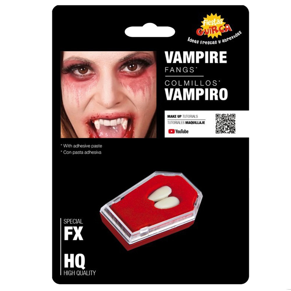 Dhëmbë vampiri për Halloween, prej materiali PVC-je, në ngjyrë të kuqe. Përdoret si aksesor për veshje të ndryshme Halloween-i apo karnavalesh.