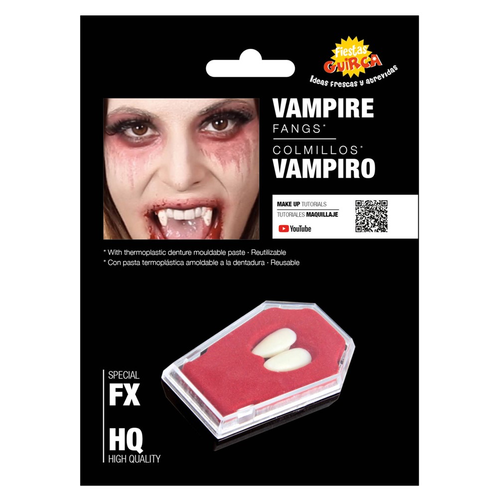 Dhembe vampirësh të bardhë në PVC me cilësi të lartë, me pastë termoplastike të derdhur, të përshtatshëm për të gjithë dhëmbët. I ripërdorshëm.