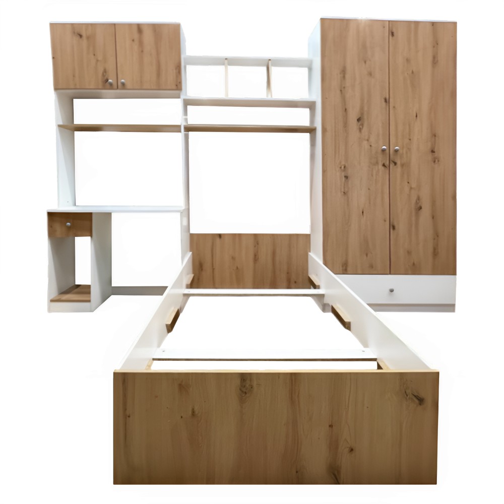 Dhomë gjumi, për fëmijë, Bond, melaminë, e bardhë/artizan, 90x46.5xH201.8 cm; 90x46.5xH201.8 cm; 93.6x200xH52 cm