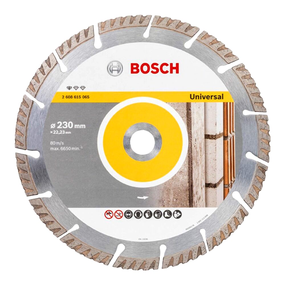 Disk diamanti profesional, 230x22.2 mm, universal. Përdoret për të prerë të gjitha llojet e materialeve të ndërtimit si: beton, tullë, pllakë, mermer etj. I ndërtuar me material çeliku dhe me dhëmbë diamanti siguron një prerje të shpejtë, të pastër dhe efikase. Disk me cilësi dhe jetëgjatësi të lartë.