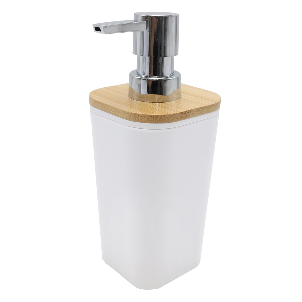 Dispenser sapuni I lëngshëm, plastik/bambu, e bardhë/bambu natyrale, 7.5x7.5xH17cm