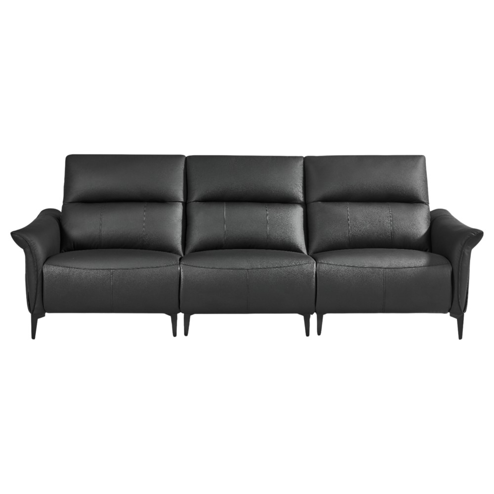 Divan, 3-vendësh, tapiceri lëkure, këmbë metalike, e zezë, 263x95xH102 cm