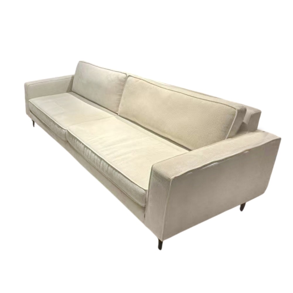 Ky divan 3-vendësh me tapiceri tekstili në ngjyrë të bardhë sjell një kombinim të përsosur mes elegancës dhe rehatisë. Me dimensionet 210x95xH82 cm, ai ofron hapësirë të bollshme për ulje të rehatshme për ju dhe të afërmit tuaj, duke u bërë pika qendrore e çdo dhome ndenjeje. Ngjyra e bardhë i jep ambientit një ndjesi të pastër dhe të ndriçuar, duke e bërë të lehtë kombinimin me aksesorë dekorativë dhe elementë të tjerë të mobilimit. Dizajni i tij minimalist dhe elegant e bën të përshtatshëm për çdo hapësirë, duke i shtuar dhomës një pamje moderne dhe të rafinuar. Ky divan nuk është vetëm një vend për të u ulur, por edhe një element që sjell stil, komoditet dhe sofistikim në çdo ambient të shtëpisë suaj.