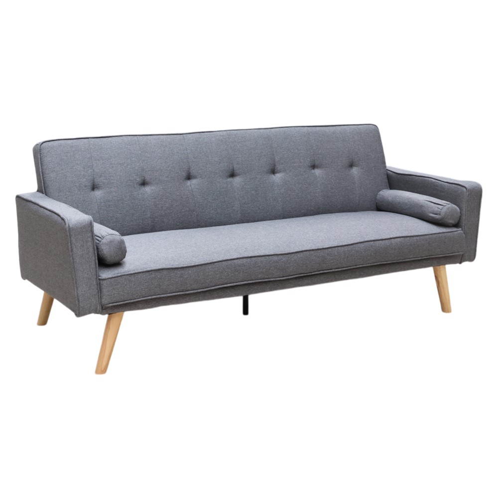 Ky divan është një domosdoshmëri praktike për shtëpitë dhe ambientet tuaja. Elegant dhe me një përbërje të materialeve tepër cilësore, ky divan është një opsion i cili do lehtësojë punën tuaj. Me anë të sistemit "click clack", kthehet në një krevat shumë të rehatshëm. Ju nuk do të keni nevojë të blini dy produkte, pasi me zgjedhjen tuaj do t'i keni në dyja në një produkt të vetëm. E përkryer për të pritur musafirët tuaj apo edhe për tu relaksuar. Materiali veshës dhe ngjyra gri e errët e bën atë një orendi luksoze. Përmasat e divanit janë 178x75/92xH73 cm.