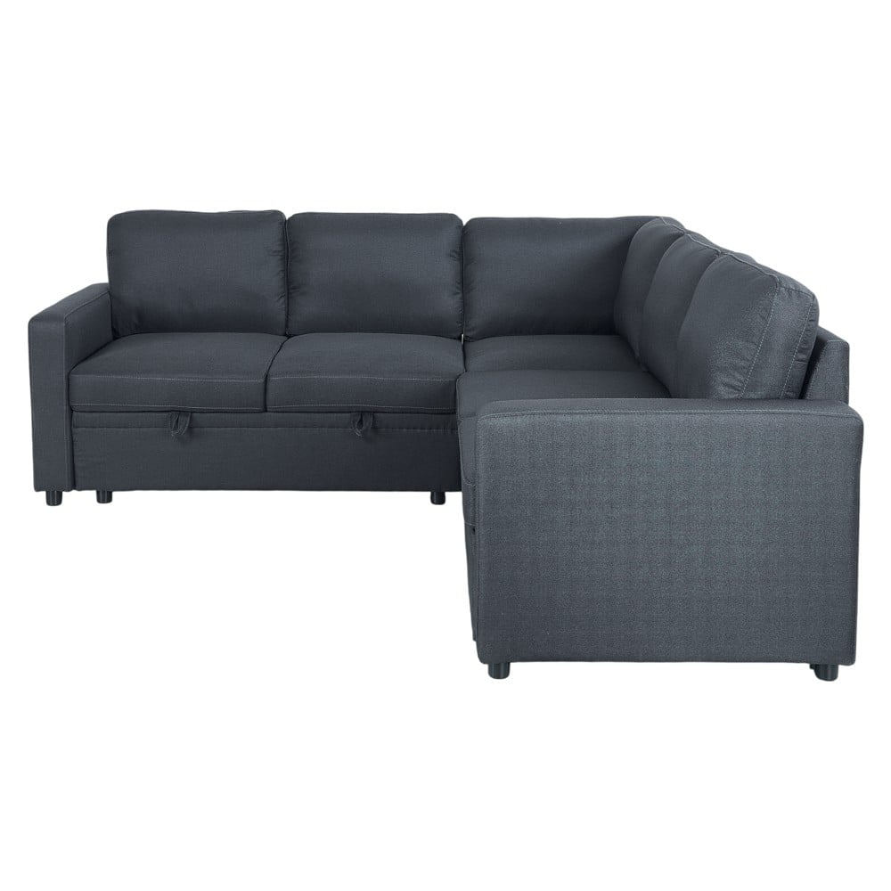 Divan, bëhet krevat, tapiceri tekstili, kornizë druri, këmbë plastike, blu e errët, 208x208xH81 cm