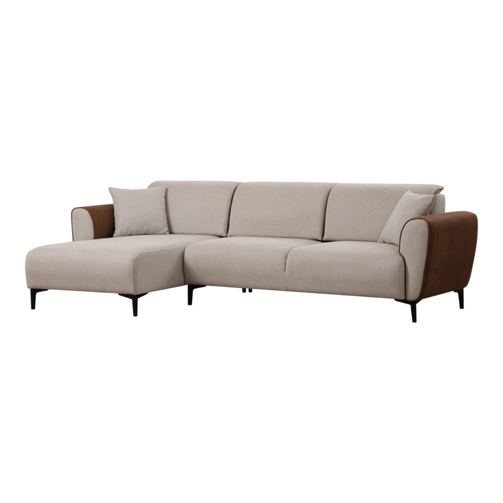 Divani këndor është një zgjedhje elegante për ata që kërkojnë një mobilje të përshtatshme për hapësirat e tyre të banimit, duke ofruar jo vetëm një pamje të bukur, por edhe komoditet dhe funksionalitet. Model majtas, i cili do të thotë se këndi i divanit është i vendosur në anën e majtë kur jeni përballë. Përmban një tapiceri tekstili, me ngjyrën gri/kafe . Kjo ngjyrë mund të kontribuojë në krijimin e një atmosfere të sofistikuar dhe të qetë, mund të përshtatet lëhtë me dekorin e shtëpisë