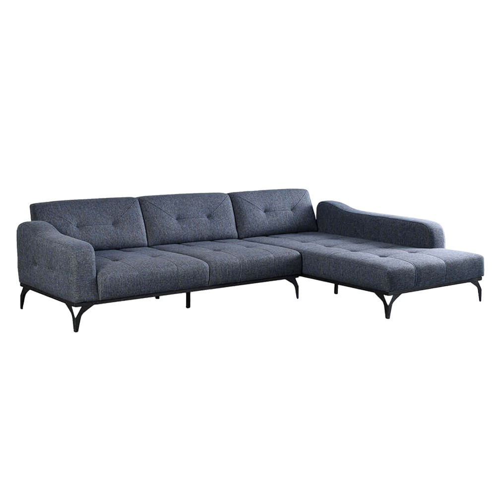 Divan këndor, djathtas, Siena, strukturë metali, tapiceri tekstili, blu, 310x185xH80 cm