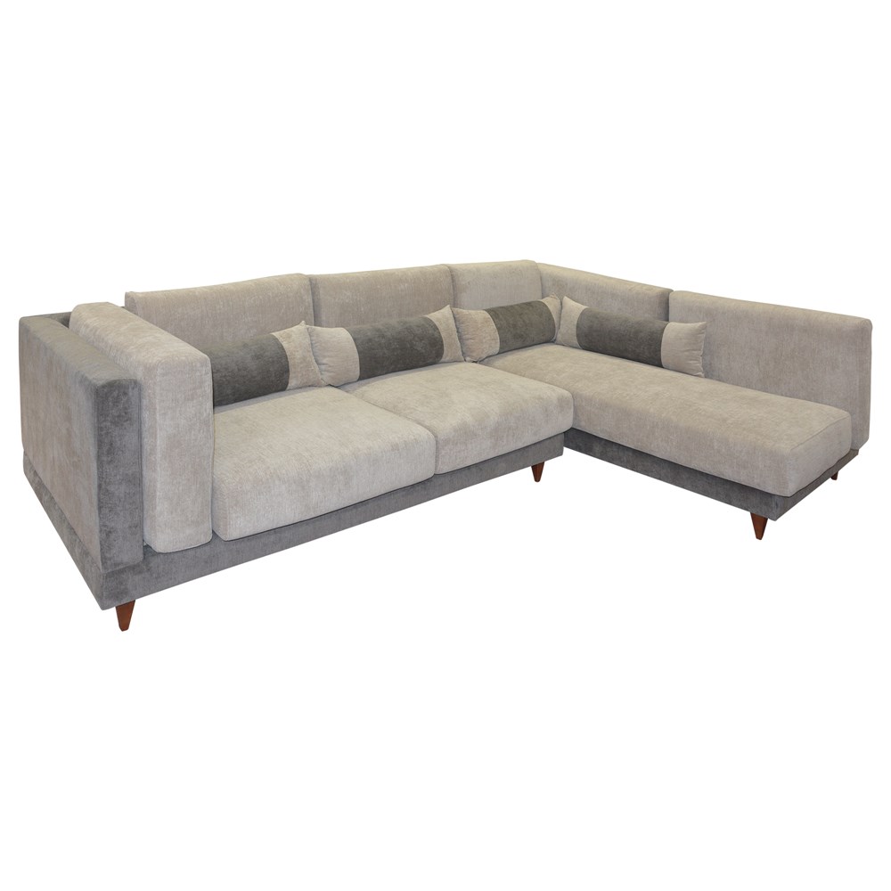 Divan këndor, djathtas, strukturë druri, tapiceri tekstili, bezhë, 185x97xH70 cm