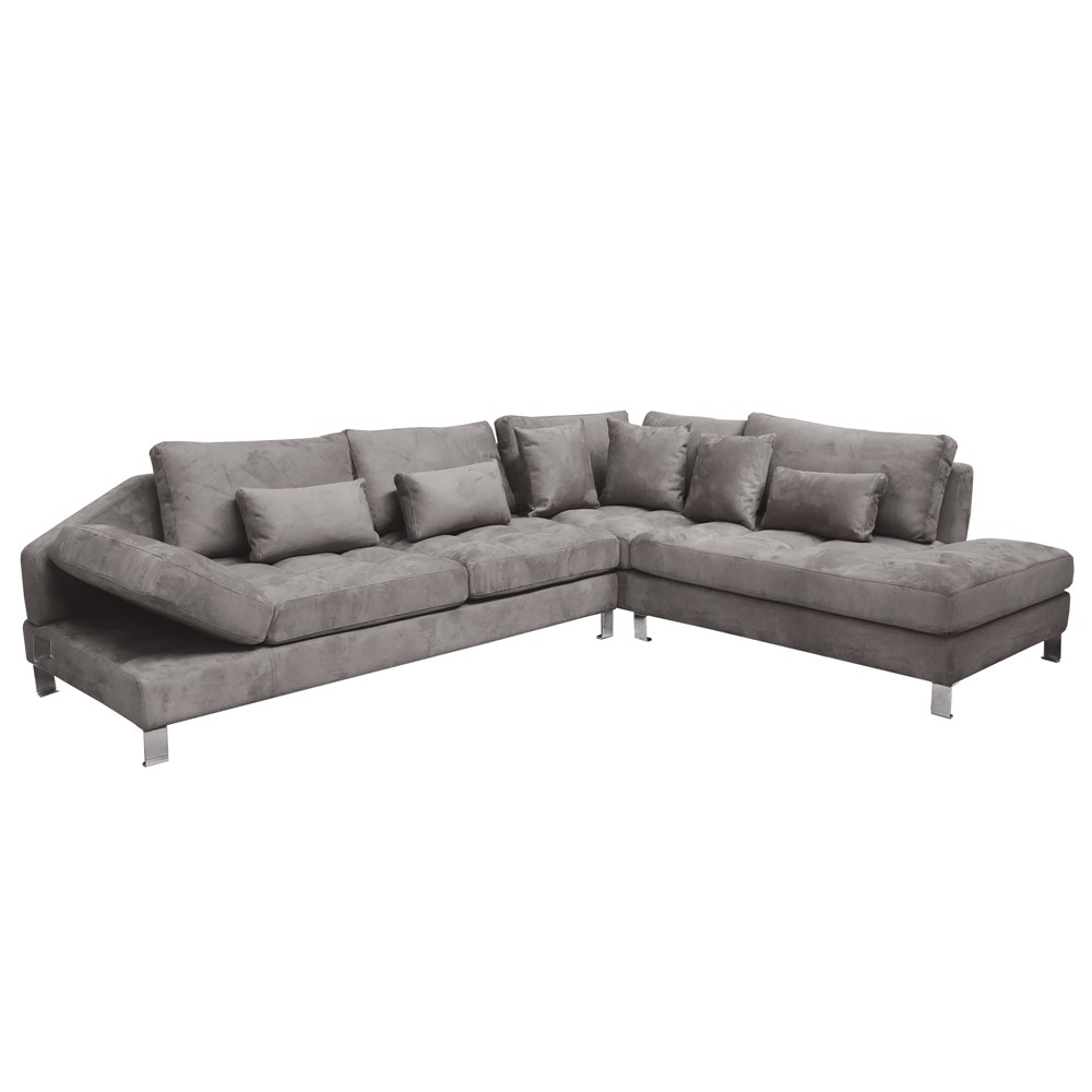 Divan këndor, djathtas, strukturë druri, tapiceri tekstili, gri, 290x230 cm
