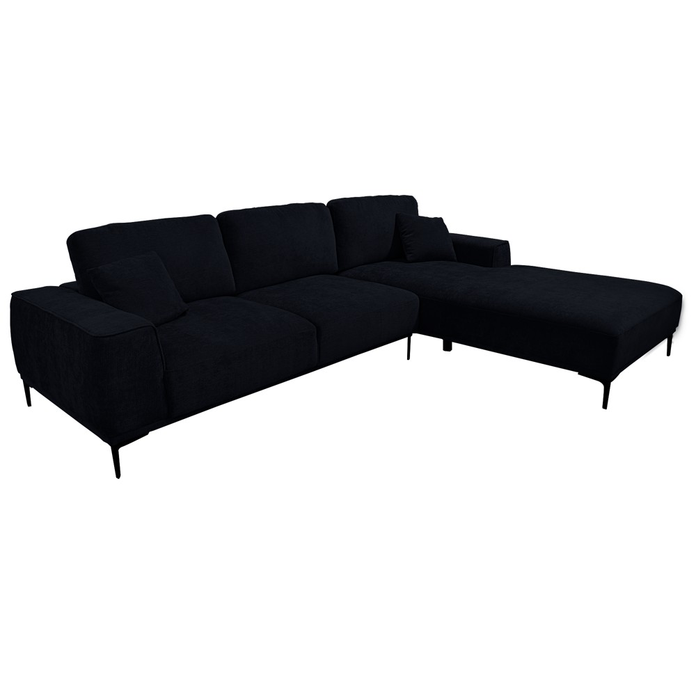 Divan këndor, djathtas, tapiceri tekstili, e zezë, 290x211xH103 cm