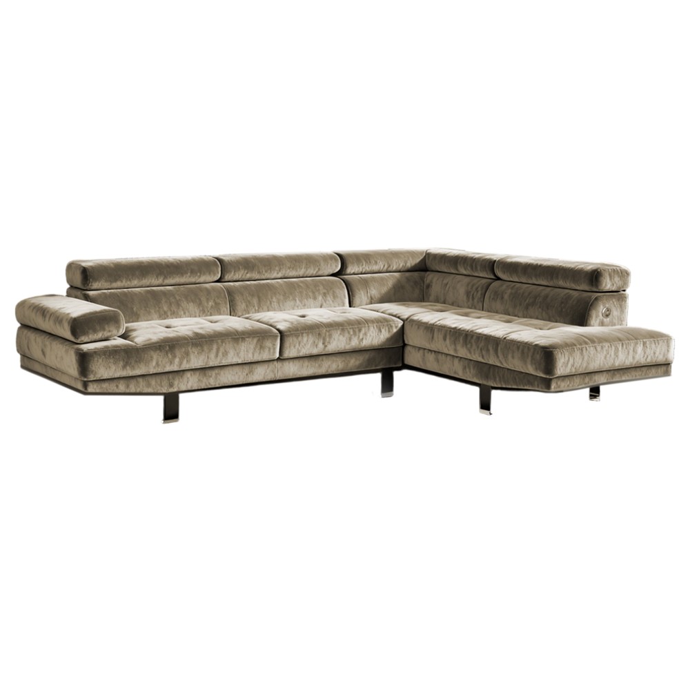 Në çdo hapësirë, ai paraqet “këndin e rehatisë dhe harmonisë”, sedilje e gjerë dhe e butë që fton për relkasim. Ngjyra kafe e hapur i jep sallonit një ndjesi ngrohtësie dhe mikpritjeje, ndërsa tapiceria tekstile siguron prekje të butë dhe rehati në çdo ulje. Këmbët metalike i japin divanit një frymë moderne dhe elegante, të lehtë në pamje, por solide në strukturë, duke e bërë atë të përshtatet me arredime bashkëkohore, minimaliste apo natyrale. Dimensionet e mëdha (295 cm lartësi dhe 217 cm thellësi për njërën pjesë) ofrojnë vend të bollshëm për ulje, jo vetëm për mysafirët, por edhe për ju të rehatisë: për t’u shtrirë, për të lexuar, për të biseduar, apo relaksuar. Ky divan e bën sallonin më mikpritës, më komod dhe më të këndshëm, një zgjedhje ku komforti, prakticiteti dhe eleganca bashkohen.