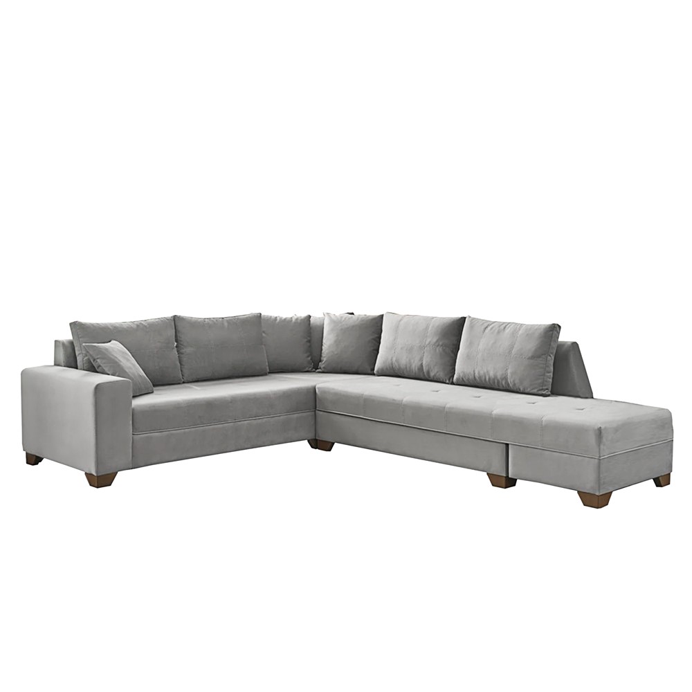 Po vlerësoni:Divan këndor, Esse, djathtas, strukturë dru ahu, tapiceri tekstili, këmbë plastike, bëhet krevat, gri e lehtë, 280x80x70 cm