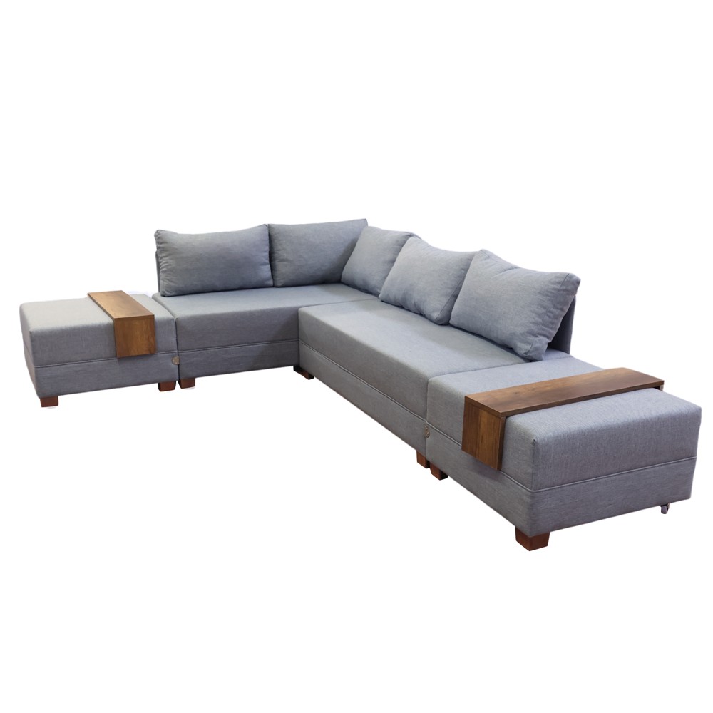 Divani këndor është një zgjedhje e shkëlqyer e projektuar posaçërisht që të jetë në gjendje për t'u përshtatur në shtëpitë moderne apo ato tradicionale. Është prodhuar me materiale të përshtatshme për mjedisin dhe shëndetin e fëmijëve. Ky model divani këndor është një zgjedhje ideale, pasi mund të kthehet lehtësisht në një krevat . Këmbët janë prej plastike të fortë me kapacitet të lartë mbajtës të përgatitur në kallëpe. Është përdorur një pëlhurë që përmban poliestër e përbërë nga poliuretani dhe derivate akrilike. Sfungjeri përdoret në densitet sfungjeri 28. Mund të fshihet me një leckë të lagur.