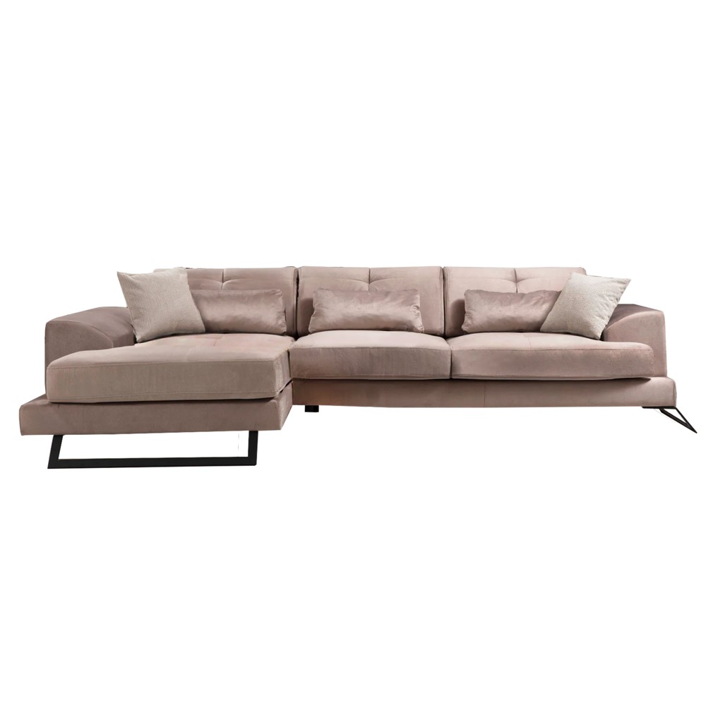 Divan këndor, Frido, majtas, strukturë metali, tapiceri tekstili, jastëk i përfshirë, bezhë, 308x100x92 cm