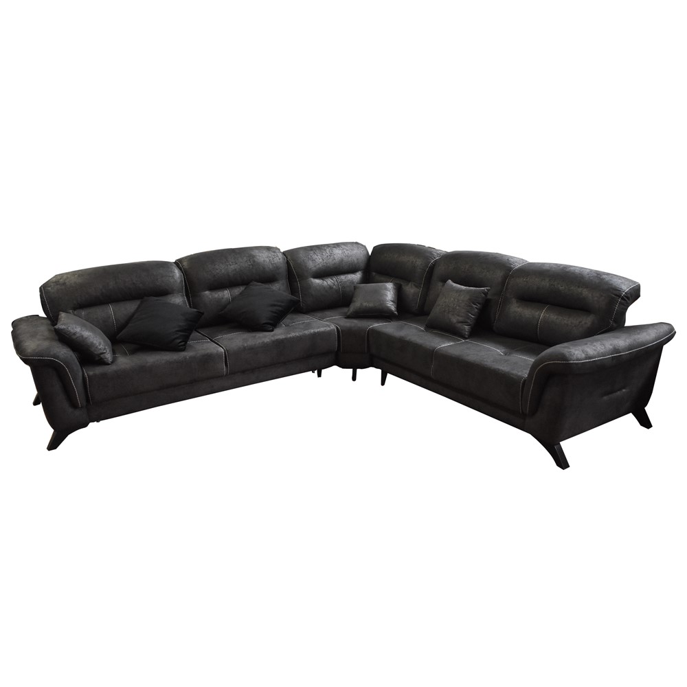Divan këndor, majtas, Milano, bëhet krevat (vend magazinimi), strukturë druri, tapiceri pu, zezë, 310x280xH70 cm