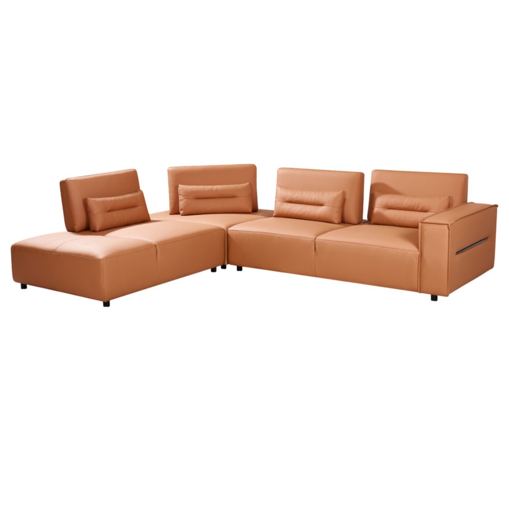 Divan këndor, majtas, tapiceri lëkure, këmbë metalike, portokalli, (2S:201x111xH86 cm)x(148x111x86 cm)