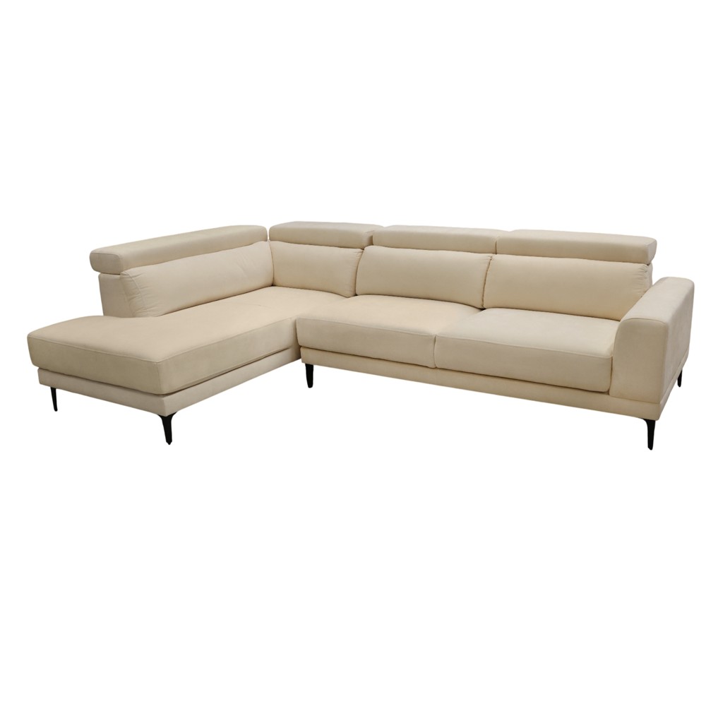 Divan këndor, majtas, tapiceri tekstili, krem, 282x289xH93 cm