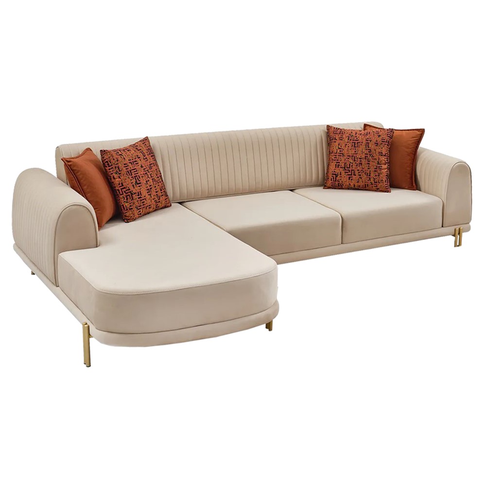 Divan këndor set, Elis, majtas, tapiceri tekstili, këmbë metali, krem, 270x170x85 cm