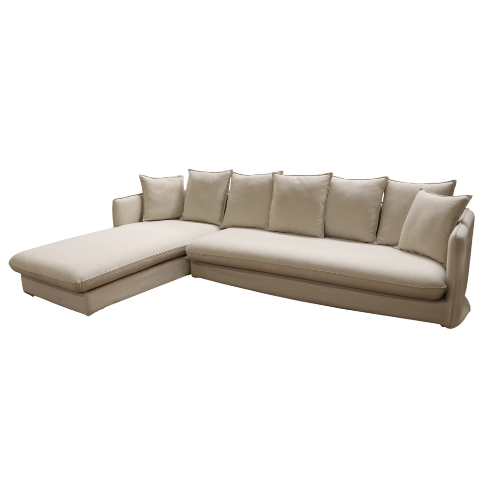Divan këndor, tapiceri tekstili, strukturë druri, bezhë, 283x181xH 83 cm