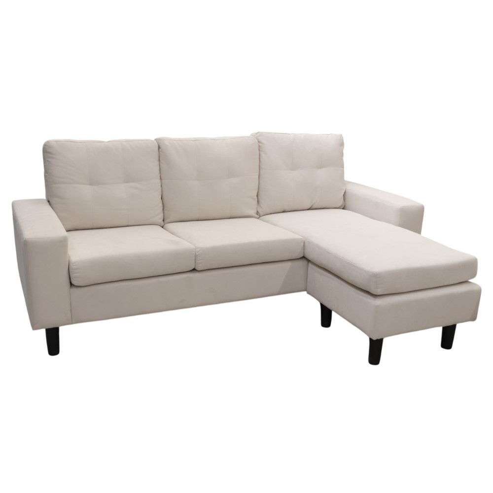 Corner sofa, universal, textile upholstery, panna, black plastic legs, 187x76xH83 cm