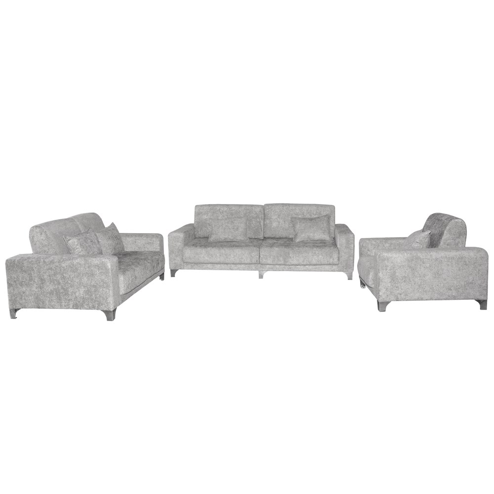 Divanë 3+2+1 vendësh, LIFE, strukturë druri, këmbë metalike 8 cm, tapiceri tekstili, gri, Divani 3-vendësh: 220x97xH83 cm; Divani 2-vendësh: 160x97xH83 cm; Kolltuku: 100x97xH83 cm