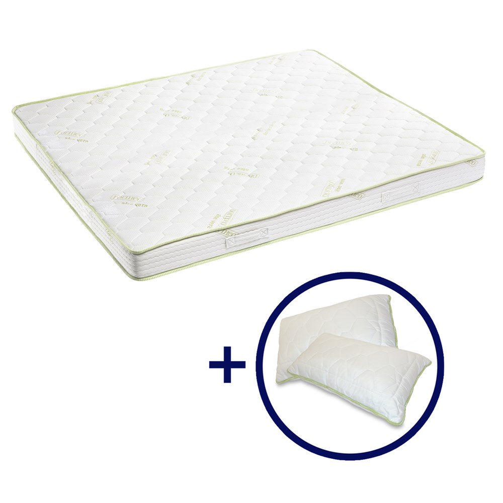 Dormeo Aloe Vera është zgjidhja perfekte për dhimbjet e shpinës dhe lekurën e ndjeshme. Dyshek i fortë për mbështetje të përsosur. Përmbajtje Aloe Vera për gjumë të qetë dhe rigjenerues e cila do përkëdhelë lëkurën tuaj. Seti përfshin: Dyshek dhe jastëk (x2): 50x70 cm