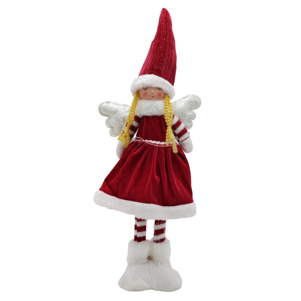 Ëngjëll dekorues pellushi, poliester, e kuqe, 47 cm, qendrim ne kembe