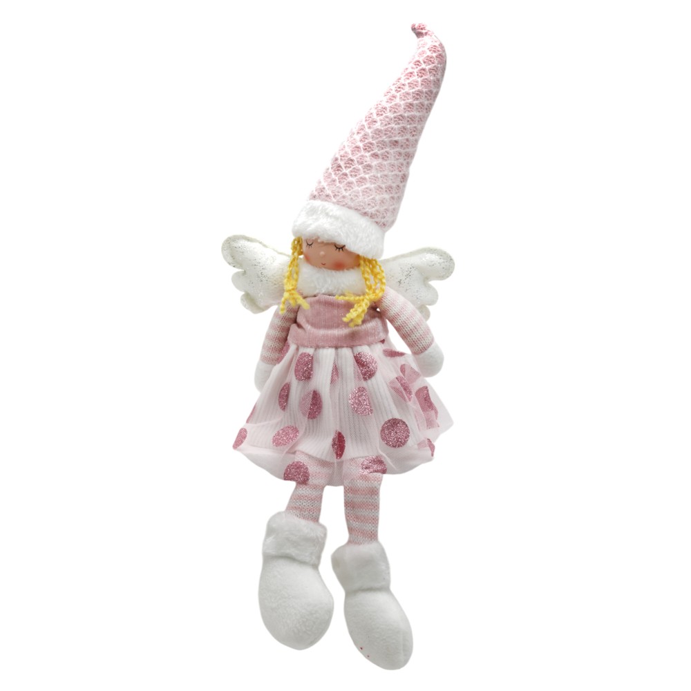 Ëngjëll dekorues pellushi, poliester, roze, 50 cm, qendrim ulur