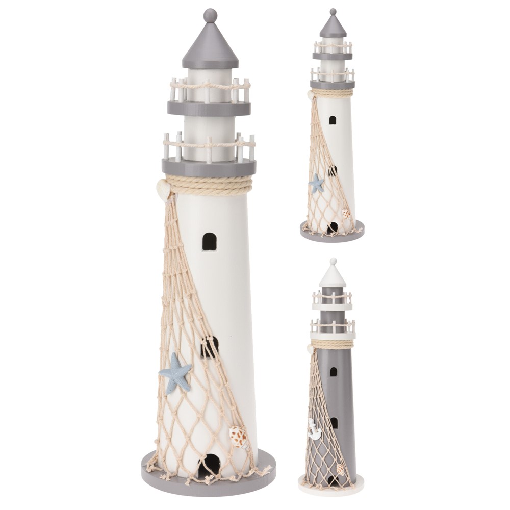 Po vlerësoni:Far dekorativ, dru, blu/i bardhë, 11x37 cm
