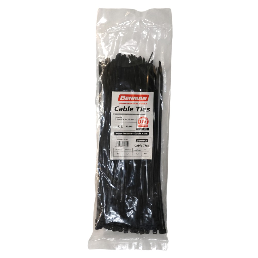 Po vlerësoni:Fasheta plastike, Benman, 250mmX3.6mm, 100 cop, e zeze