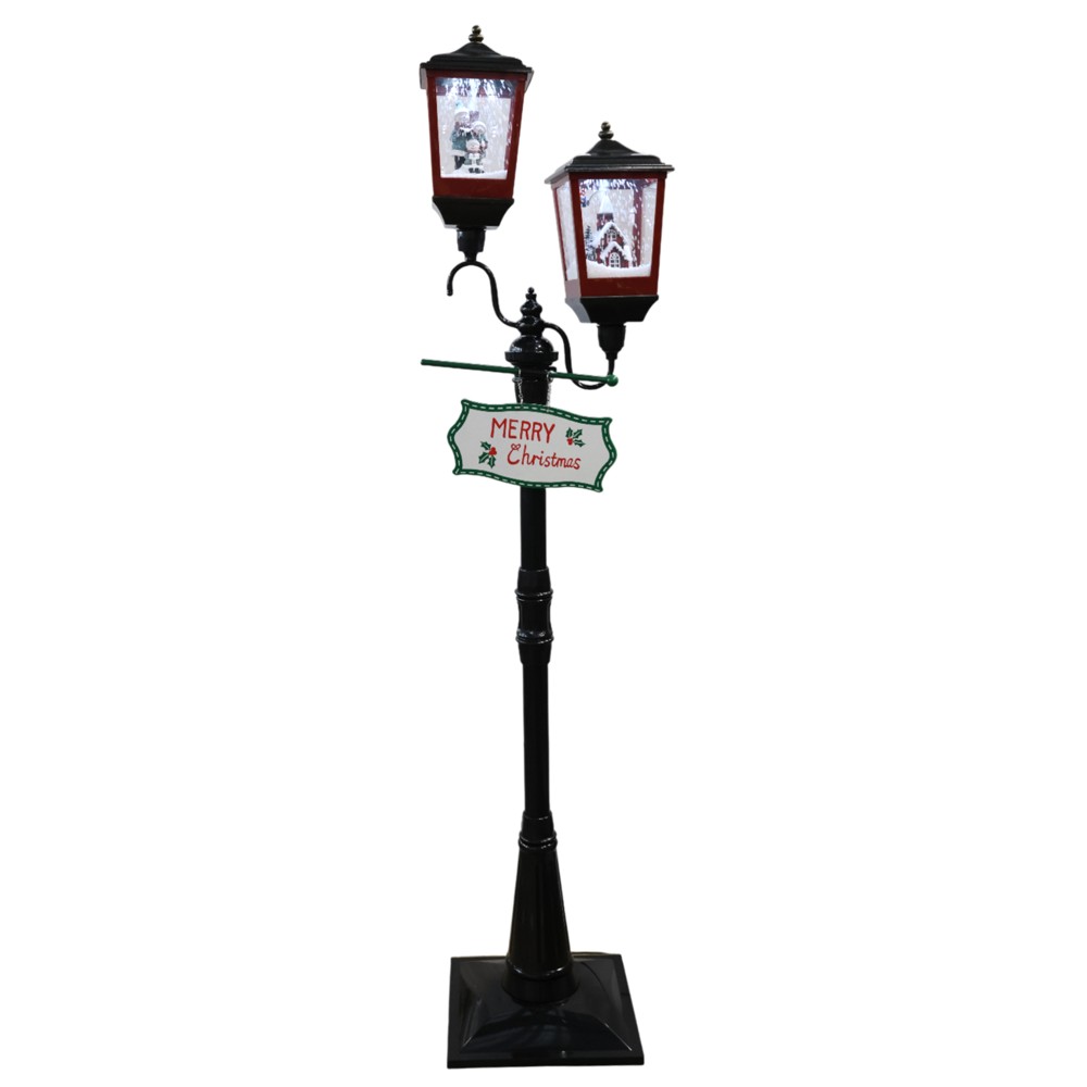 Double Christmas snow lantern, black with red, H184 cm