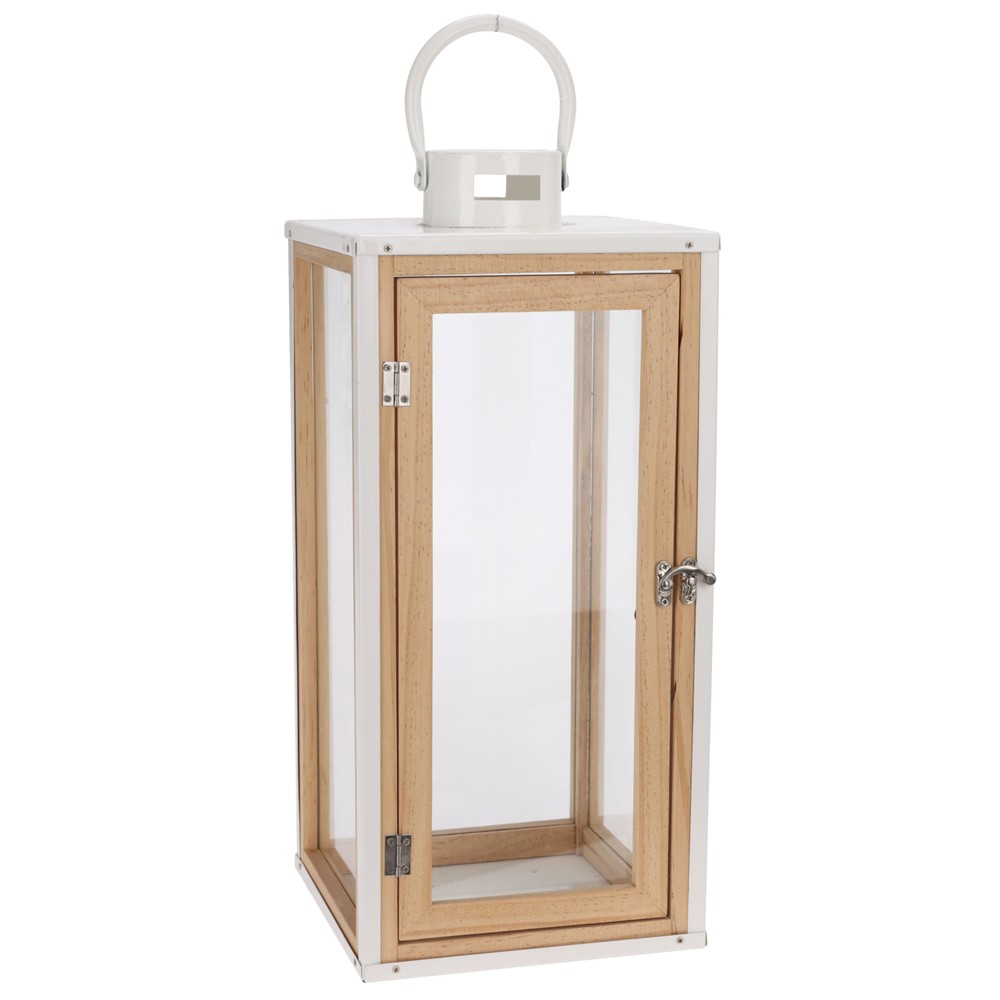 Fener dekorativ, M, xham/druri, e bardhë/natyrale, 20x20xH45.5 cm