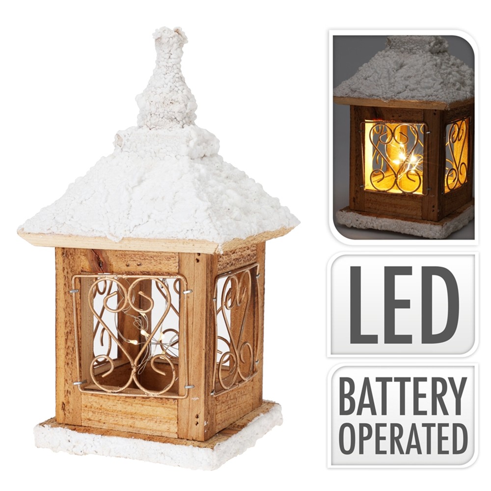 Fener dekorativ me bateri, ndricim LED, dru, 11x21 cm