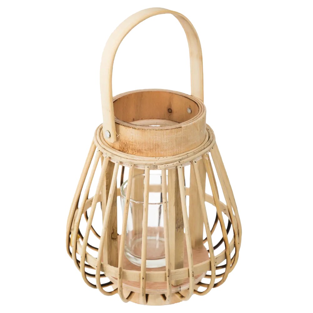 Fener dekorativ, ratani, natyrale, Ø14.5xH16 cm
