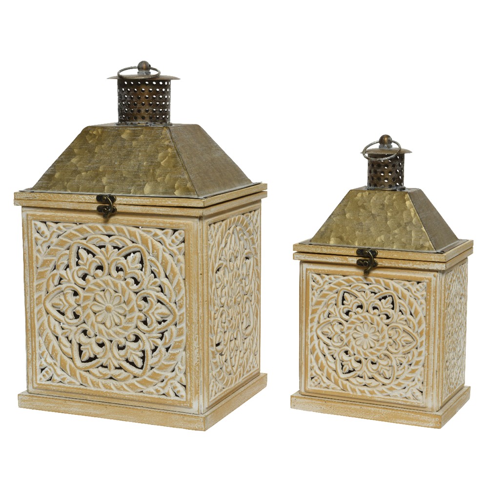 Po vlerësoni:Fener dekorues, set 2 copë, druri, natyrale