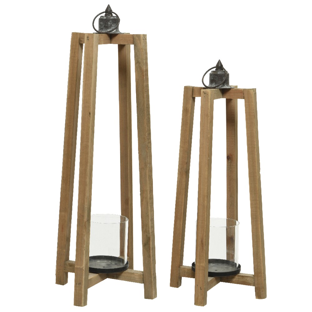 Fener dekorues, set 2 copë, druri, natyrale
