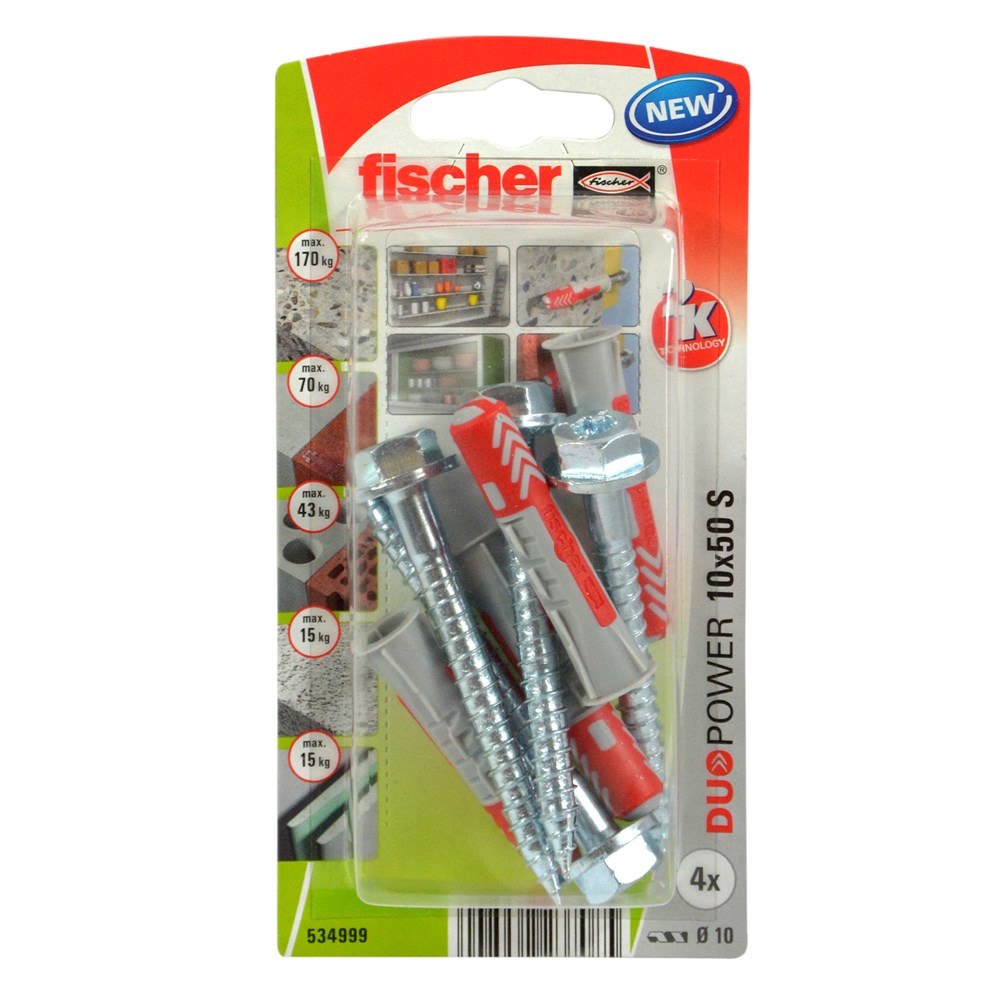 Po vlerësoni:Fischer upa plastike universale DUOPOWER 10 x 50 & vida kokë egzagon 4.5 x 47